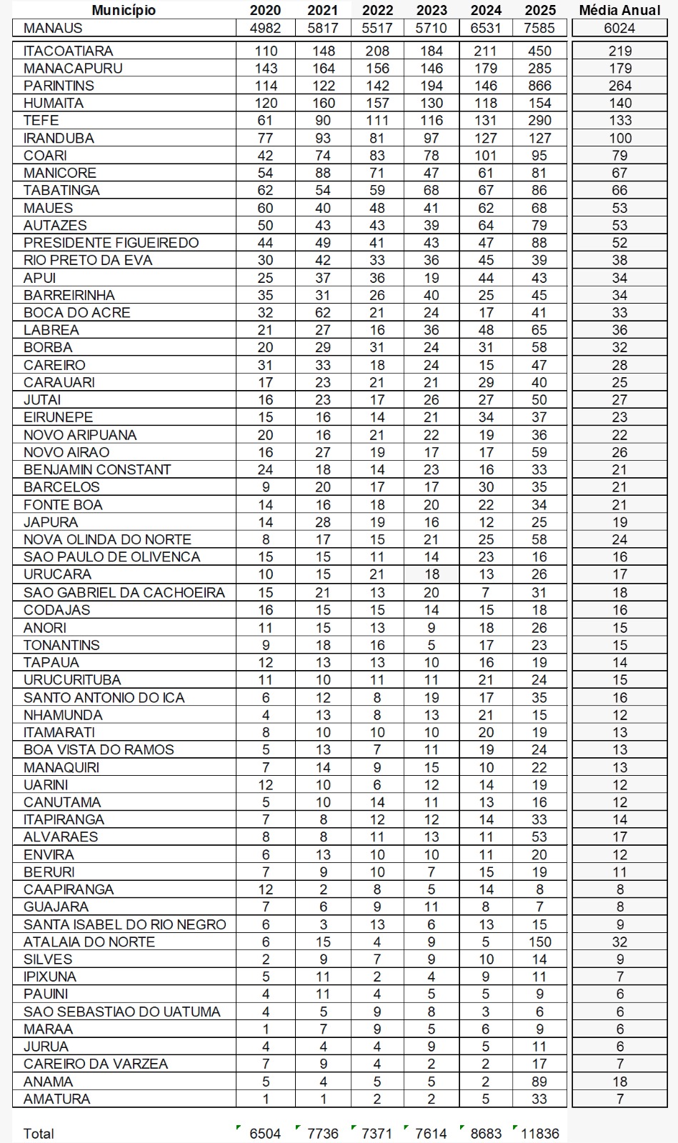Manaus mantém o maior volume de registros, com média anual de 6.024 atos empresariais no período. No interior, municípios como Parintins, Itacoatiara, Manacapuru, Humaitá e Tefé apresentam crescimento consistente, evidenciando o fortalecimento da atividade econômica fora da capital.